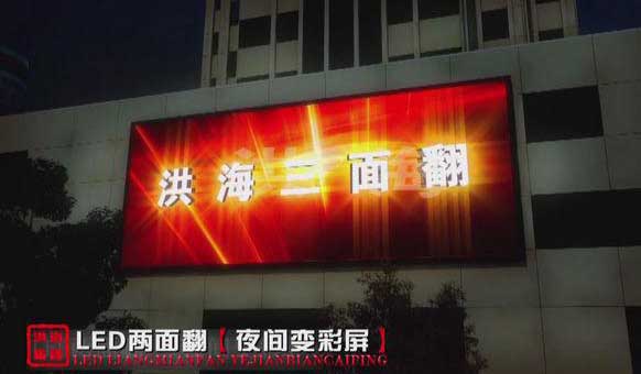 led兩面翻顯示屏將三面翻和電子顯示屏有機地巧妙結合,使其造價遠遠低于普通的電子顯示屏。投入低,用途廣,可以演繹無限的精彩內(nèi)容,可以容納大量的廣告客戶,最大限度地提高廣告投資商的投資回報率。使用壽命長,可移動性。那么就由洪海光電工程師為大家介紹下led兩面翻顯示屏優(yōu)勢。